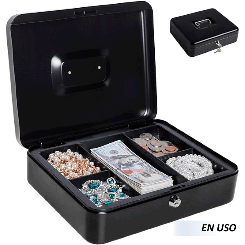 ¿Qué es?: las cajas de efectivo están hechas de acero duradero que está sólidamente construido y puede evitar caídas e impactos. Equipado con una amplia asa de transporte, puedes transportar tu caja de efectivo con bloqueo fácilmente.
