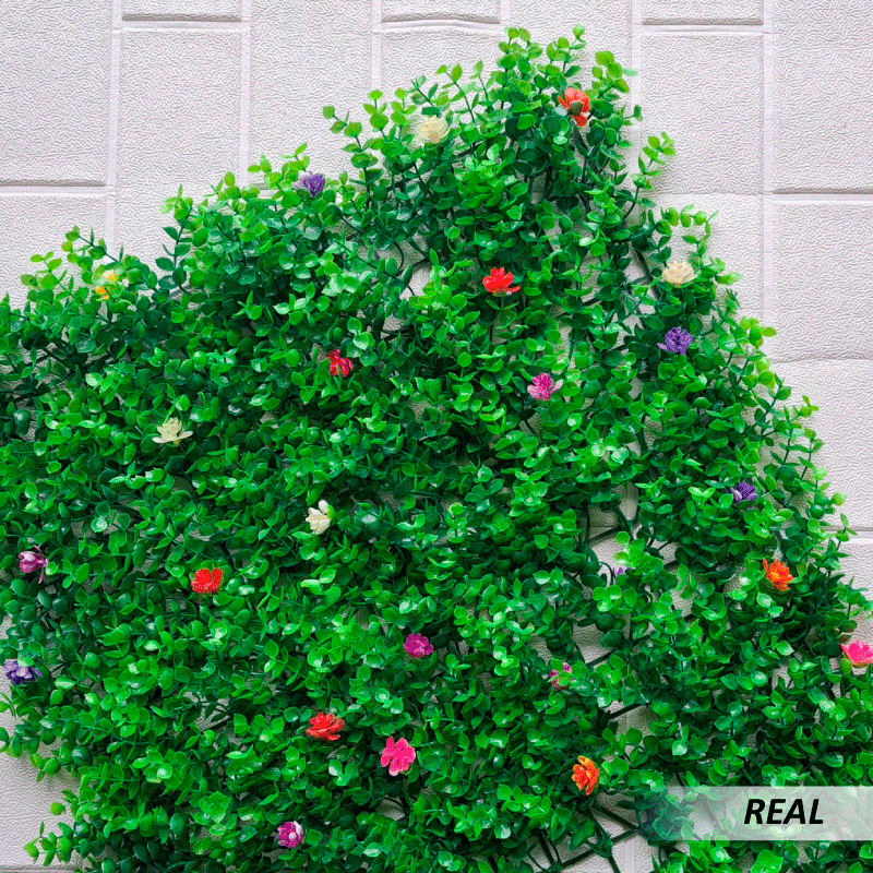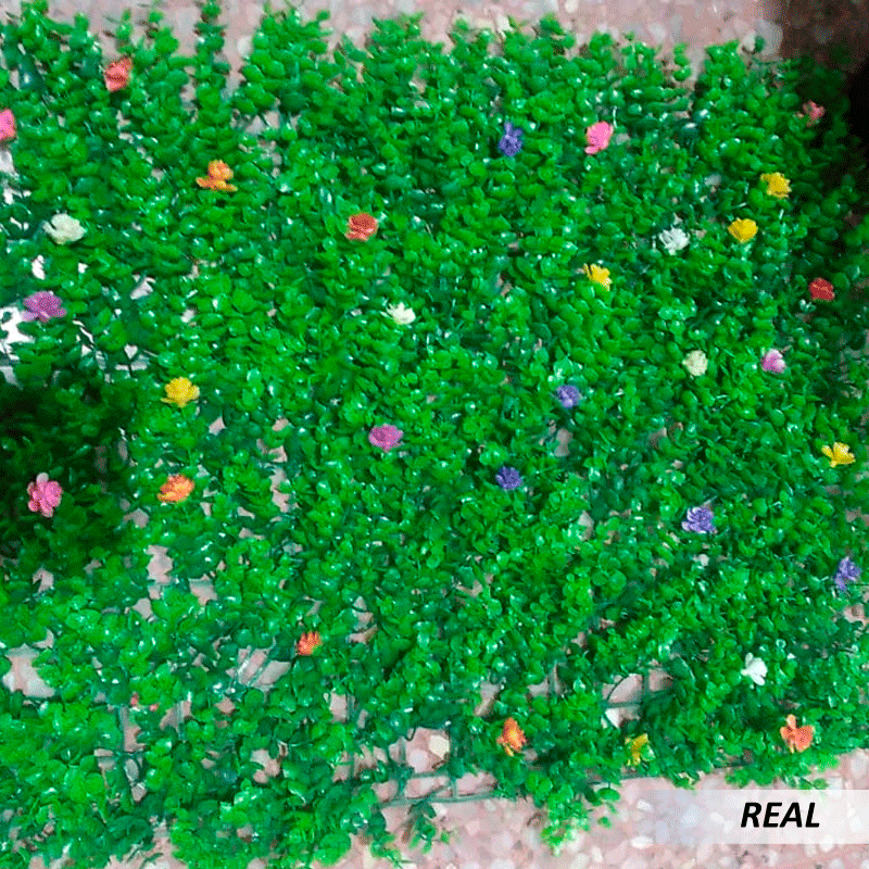 ¿Qué es?: es una malla sintética de césped con flores que parece césped natural y sirve para decorar con un aspecto de naturaleza espacios dentro y fuera de la casa, restaurantes, oficinas, fachadas y más