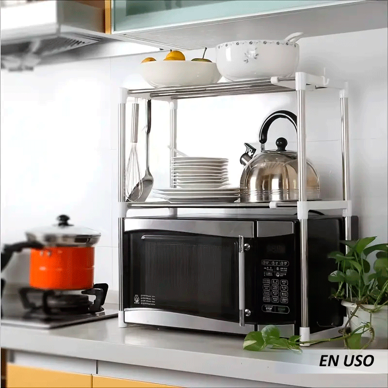 ¿Cómo funciona?: con gran capacidad de carga, el cual puede ser utilizado en cualquier espacio que se considere necesario. Es de fácil instalación, debido a su diseño de ensamblado a presión, organizan perfectamente hornos de microondas, condimentos, ollas arroceras u otros utensilios de cocina para hacer que sus mostradores sean más limpios y limpios.