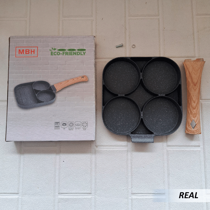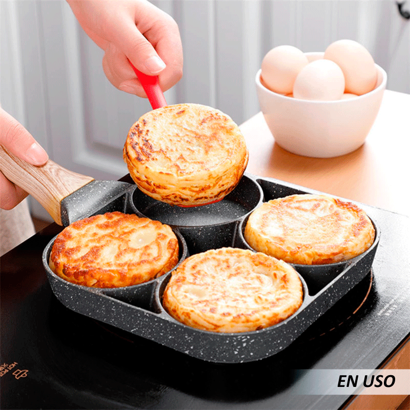 ¿Cómo funciona?: La sartén cuenta con el anillo anti quemaduras de acero inoxidable, que también se caracteriza por el diseño anti escaldado, y la sartén es resistente al calor. la sartén se puede utilizar para hacer tortilla, hamburguesa y similares, y la sartén tiene 4 compartimentos para hacer la cocción rápida y fácil.