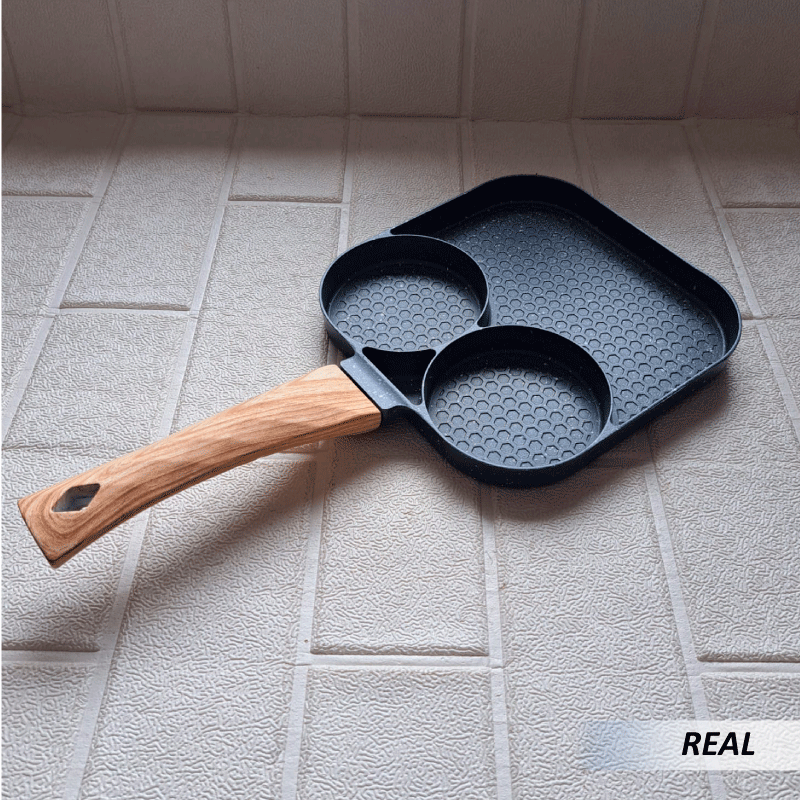 ¿Qué es?: Las ollas planas para freír están hechas de los mejores materiales, revestimiento antiadherente de piedra maifan, sartén antiadherente, resistente al desgaste y duradero, el cuerpo de esta sartén para huevos de 4 orificios adopta un diseño de cuerpo de olla gruesa, que se caracteriza por una gran capacidad y una cocción más fácil.
