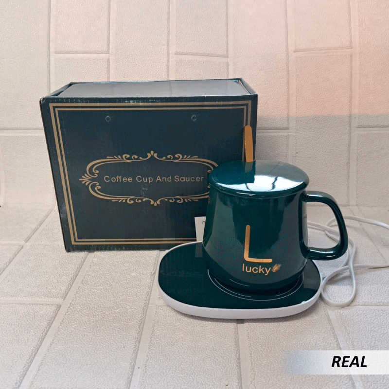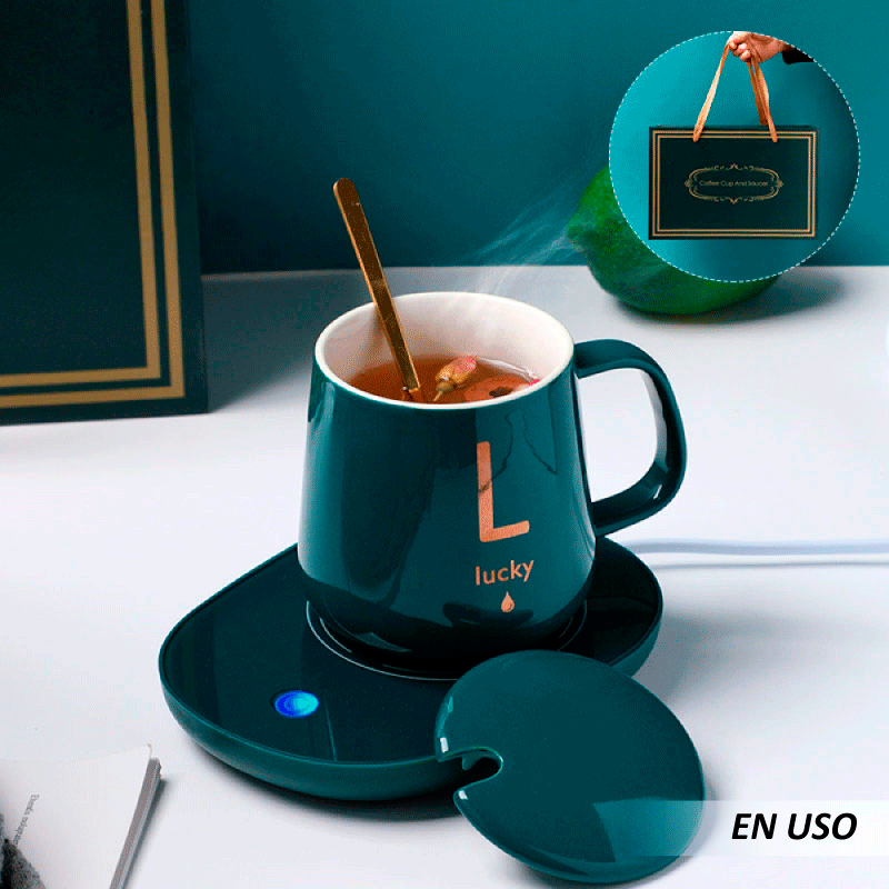 Nombre: Taza de café y plato con calentamiento eléctrico